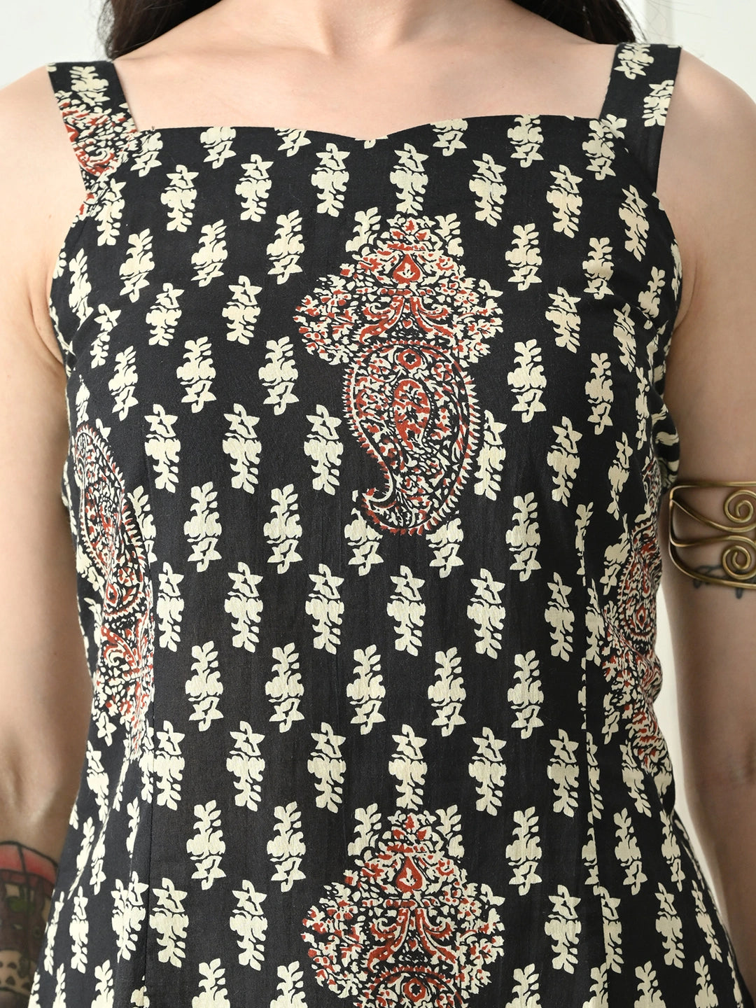 Elevate your everyday style with this square neck top crafted from breathable paisley hand block printed cotton. The clean neckline frames the collarbone beautifully, while the back is accentuated with delicate shell lace detailing for a touch of artisanal charm. Effortlessly stylish and versatile, this piece pairs well with both casual bottoms and festive layers, making it a wardrobe essential with timeless appeal. |